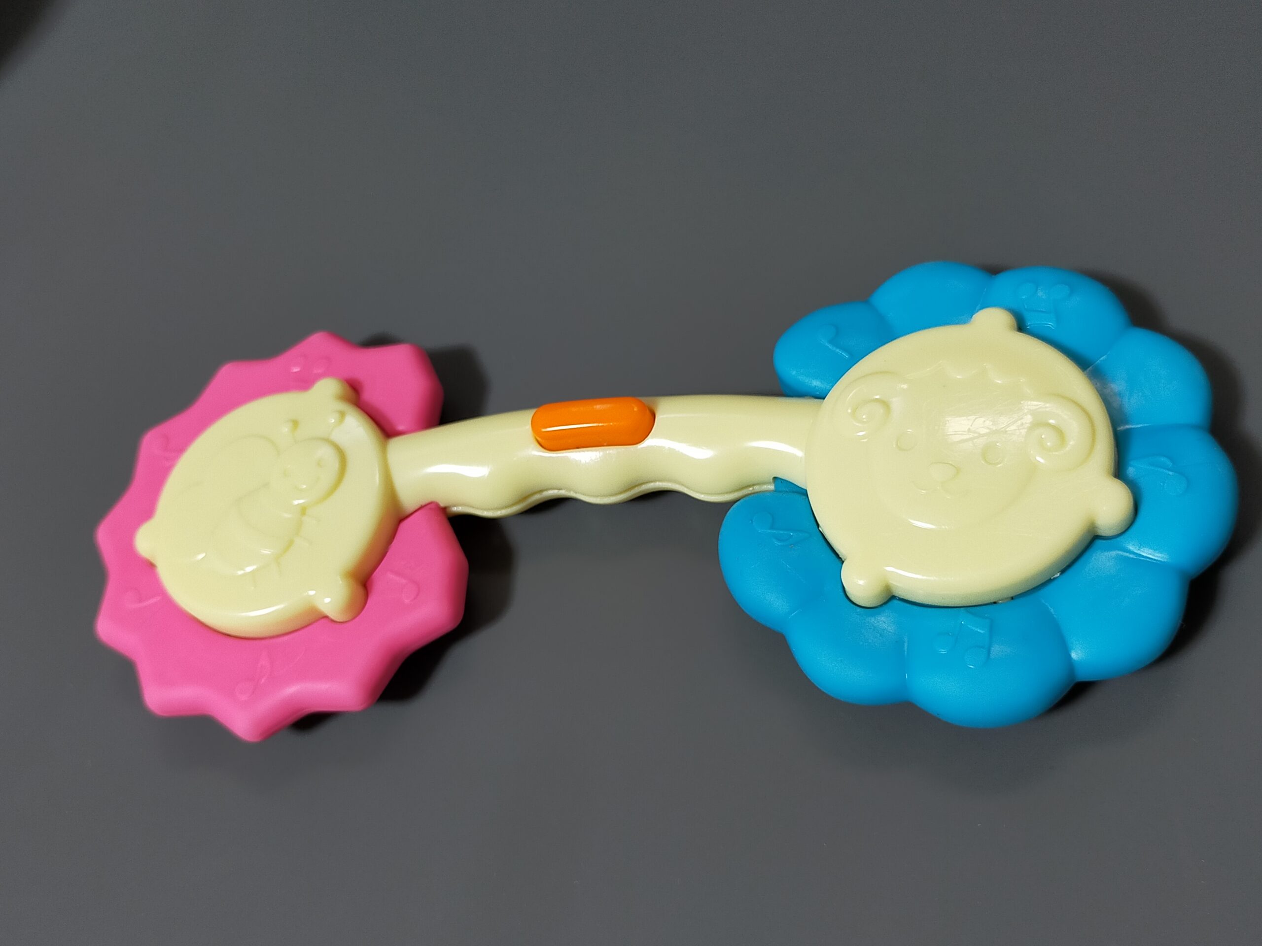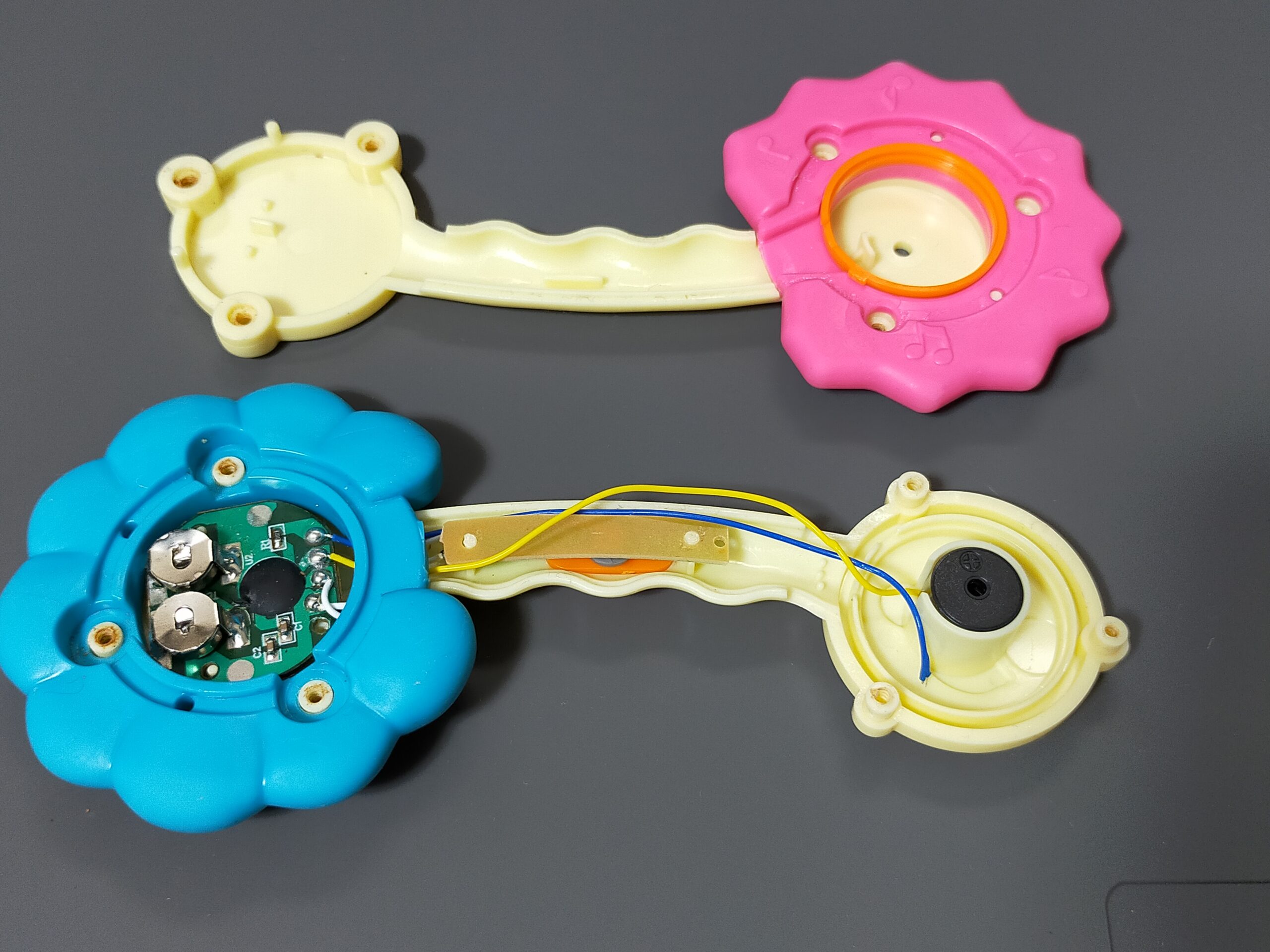 中央のオレンジ色のスイッチを押すと、メリーさんのひつじと、ぶんぶんぶん(ぶんぶんぶんハチが飛ぶー)のメロディーがなるものです。