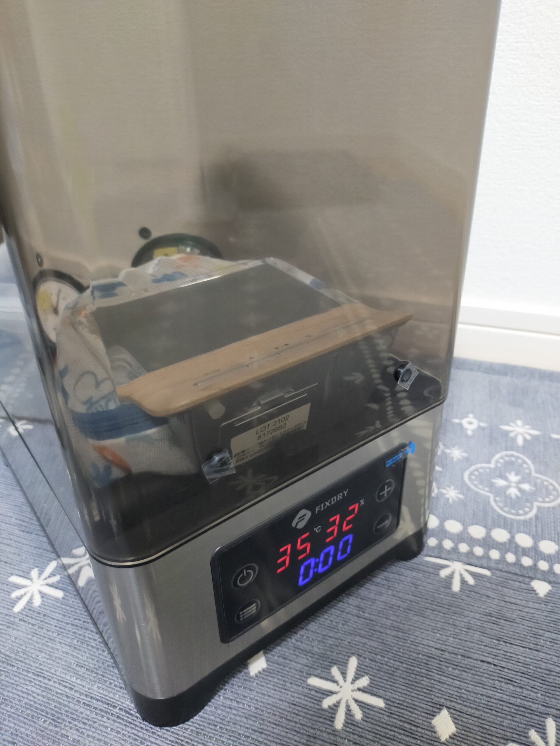70度設定ができる、かつ、ケースが大きめでフィラメント保管中にシリカゲルをごそっと入れておけるFIXDRY製DOUBLE-NT1にしました。